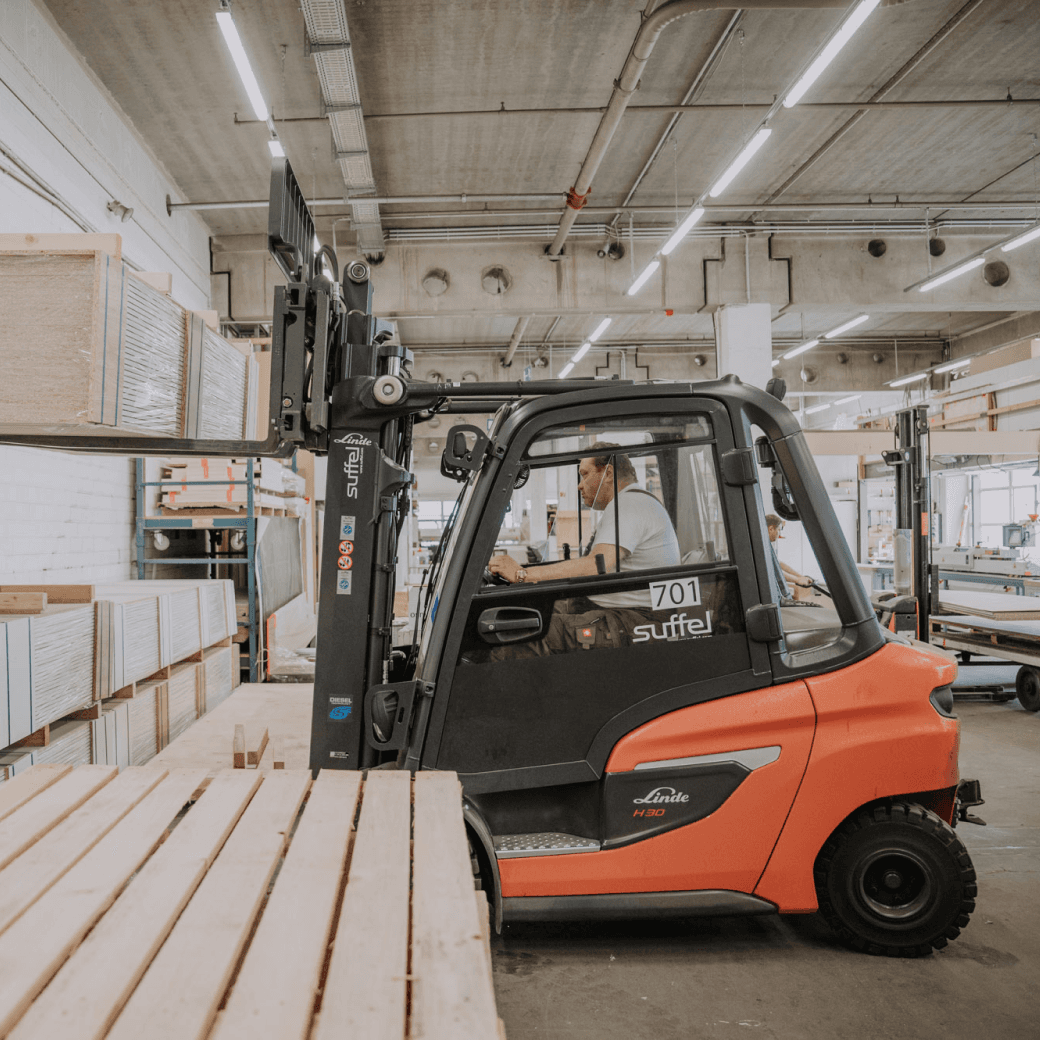 Ob Halle oder Lager: Mit unserem ausgeklügelten System liefern wir Ihr Material zur richtigen Zeit an den richtigen Ort.